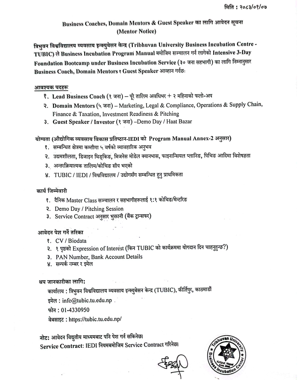 TUBIC विज्ञ_विशेषज्ञको रोष्टर (Roster) का लागि आव...